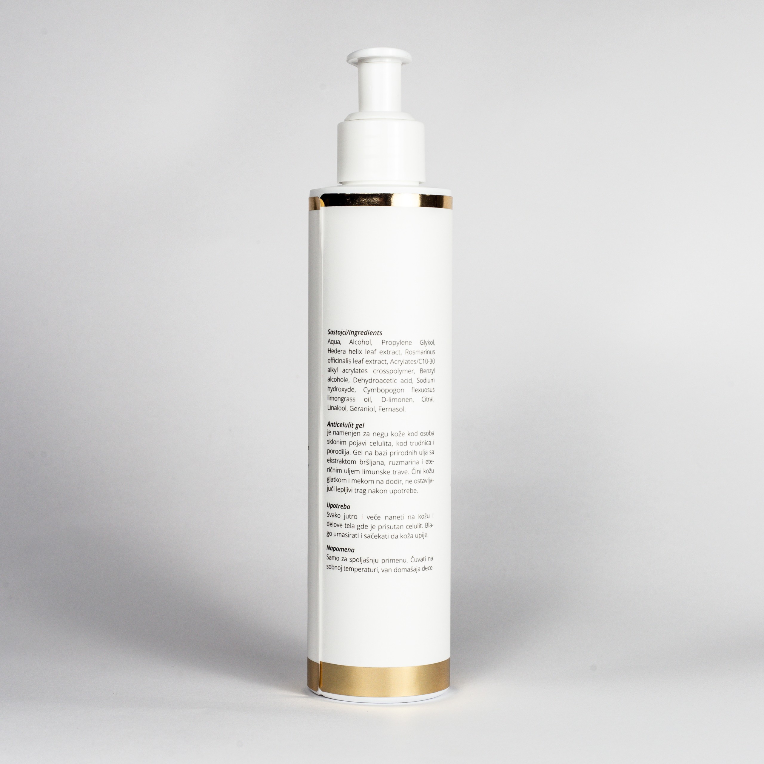 Prirodna formula gela namenjen za negu kože kod osoba sklonim pojavi celulita, bezbedan za korišćenje kod trudnica i porodilja. Čini kožu glatkom i mekom na dodir, ne ostavljajući lepljivi trag nakon upotrebe, ne greje i ne hladi kožu, već je osvežava i tonira dajući joj prijatan miris i zategnutost.