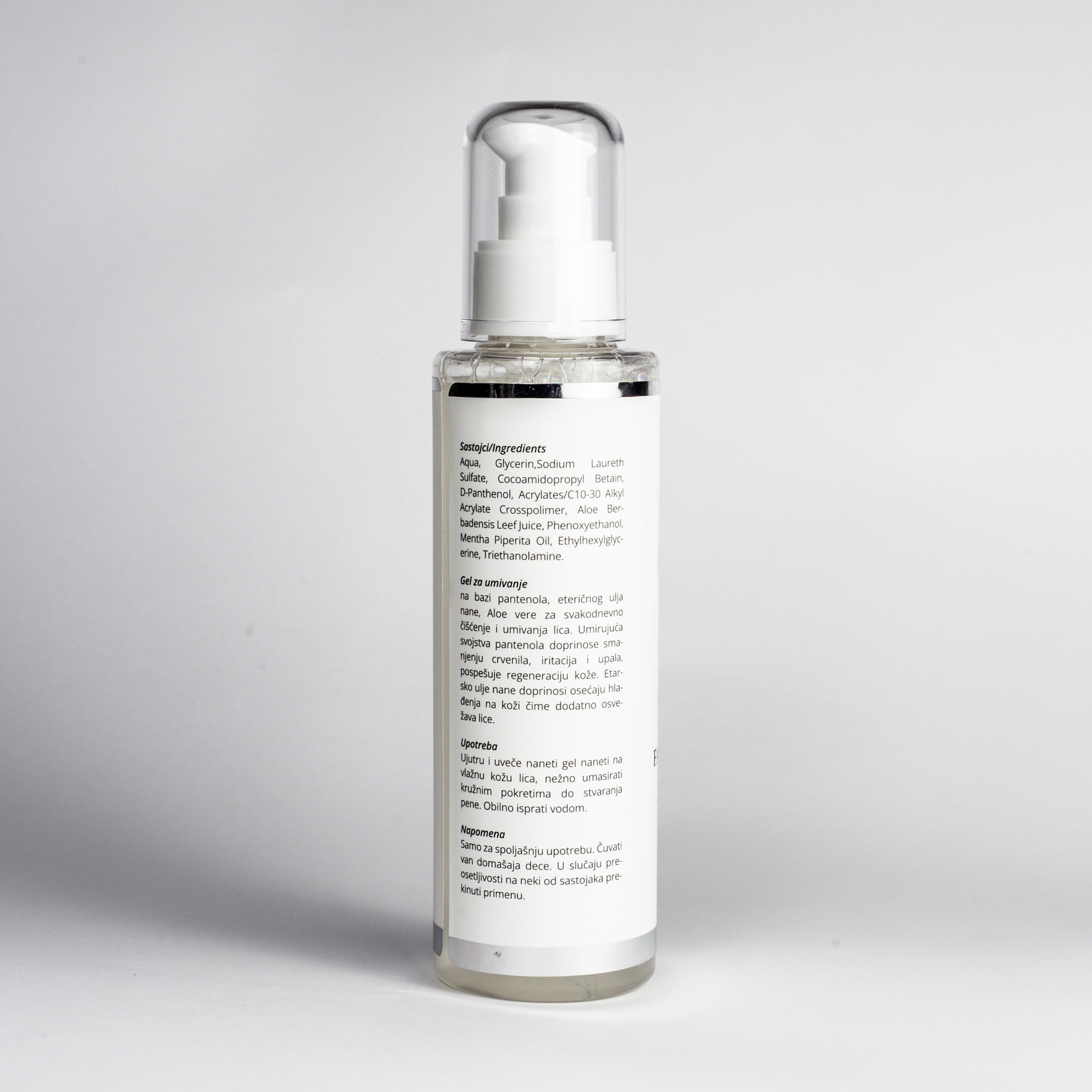 Gel za umivanje na bazi pantenol, eterično ulje nane, Aloe vere za svakodnevno čišćenje i umivanja lica.
